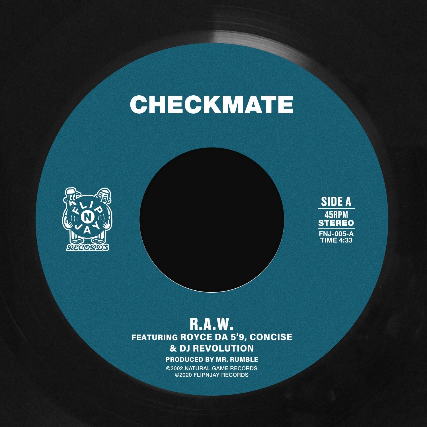 We’re back with a FLIPNJAY favourite! This underground banger is from the early 2000s with Vancouver legends Checkmate and Concise, two of Canada’s dopest MCs ever! This gritty beat, courtesy of Mr. Rumble, features the beast Royce Da 5'9 with an absolute classic verse and the nastiest of cuts from DJ Revolution. The B-side is another Checkmate/Royce collaboration from 2013 produced by the incomparable Hazel. Both tracks mixed by the go-to Vancouver studio technician and producer Roger Swan.