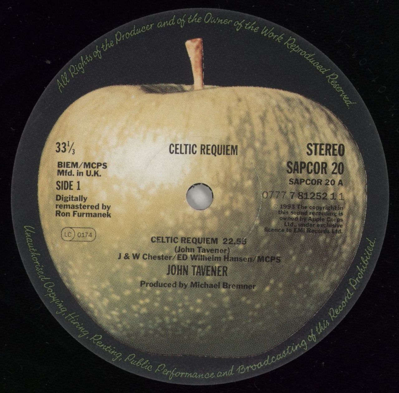 John Tavener Celtic Requiem - VG UK Vinyl LP