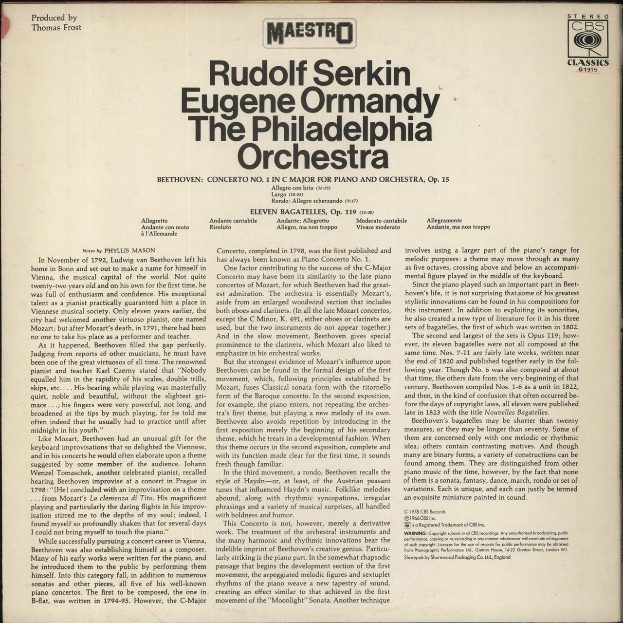 Ludwig Van Beethoven Beethoven: Piano Concerto No.1 - Bagatelles UK Vinyl LP