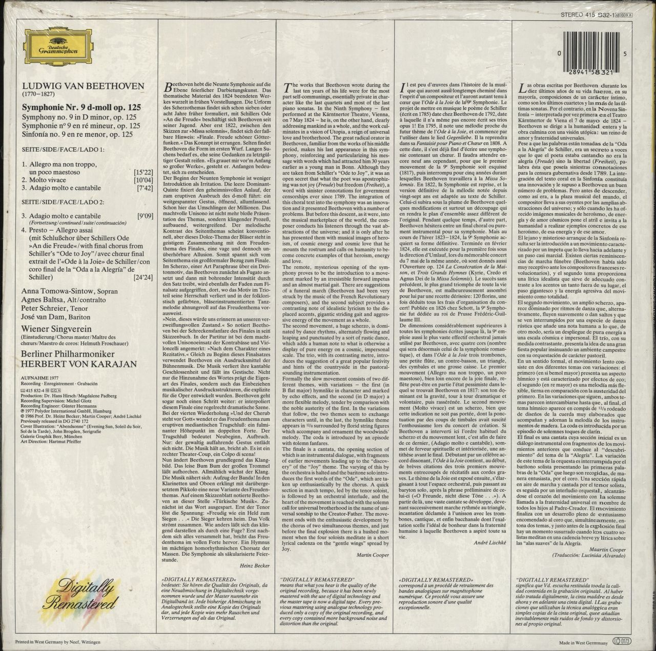 Ludwig Van Beethoven Symphony No. 9 "Choral" German Vinyl LP